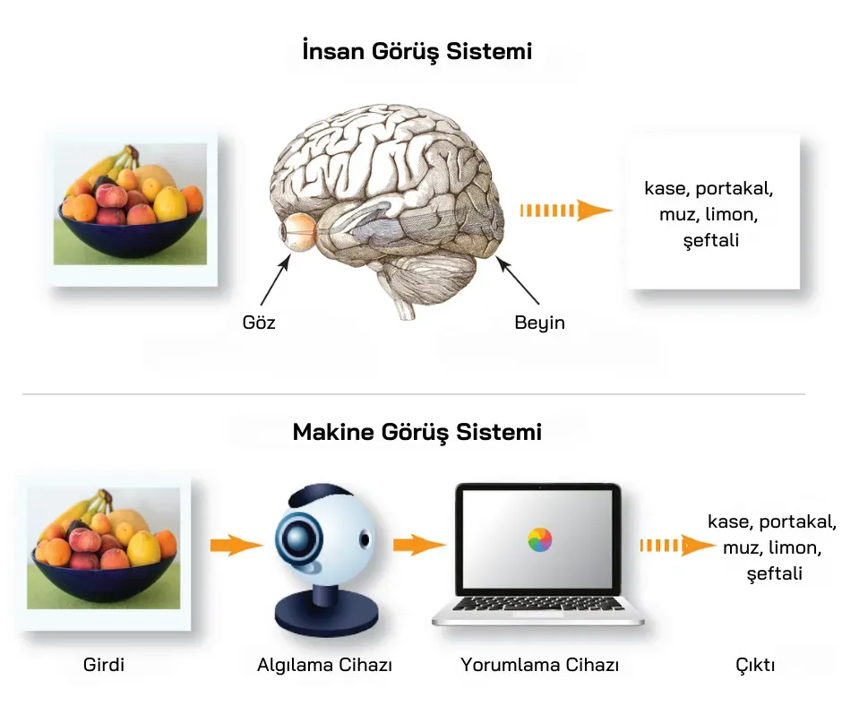 | Görüntü İşleme Algoritmaları ve Uygulamaları | Görüntüyü ön işlemekten kenar tespiti, kontrast ayarı, morfoloji gibi işlemlerden nesne tespiti, segmentasyon ve sınıflandırmaya uzanan çok adımlı süreçler. | Tıbbi görüntülemede hastalık tespiti, tarımda hasat olgunluğu belirleme, endüstriyel kalite kontrolünde hataların otomatik tespiti gibi uygulamalar. |